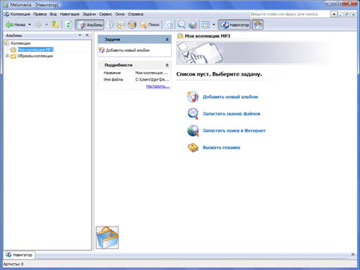 Рассмотрев работу программы на примере уже готовой коллекции, пора перейти к заполнению своей собственной. Для начала создадим новую коллекцию, выбрав пункт меню «Коллекция | Новая коллекция...» и задав желаемое имя файла, например, «Моя коллекция MP3». Сразу после создания файла, новая коллекция появится в дереве.